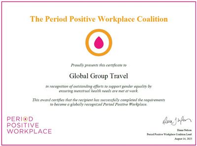 Did you know that research shows inadequate menstrual health conditions in the workplace can lead to wage loss, absenteeism, and limited mobility? As a business, Global Group Travel is committed to promoting menstrual equity and supporting our employees. By providing access to period products and accommodating menstrual needs, we're investing in gender equity and creating a Period Positive Workplace. Let's break the stigma and build inclusive spaces together!
